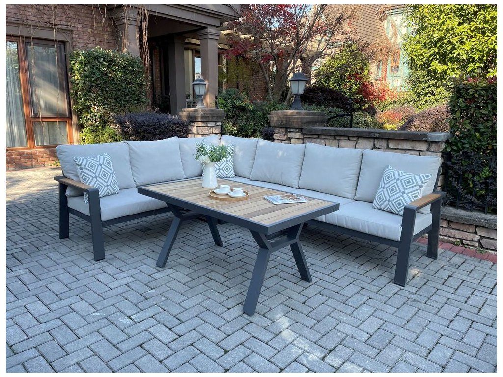 Jídelní stůl + levé sofa + pravé sofa + rohový díl + mezikus + podušky